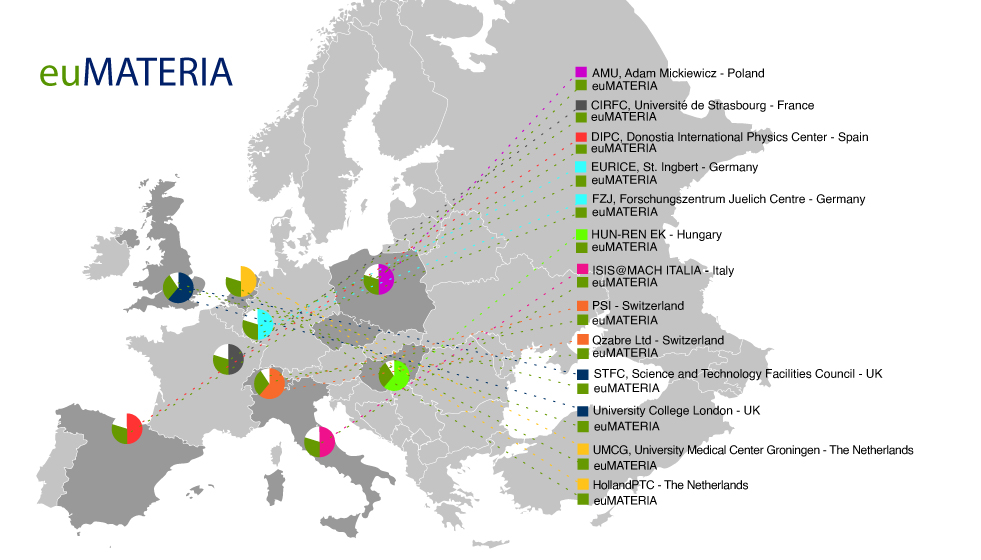 Enabled through an integrated and coordinated single-entry point access system, euMATERIA aims to promote, enable and support new and innovative multidisciplinary research on such Medium-Range Facilities to address emerging scientific problems and key societal challenges, particularly in the areas of materials, energy storage, environment, ICT and health. To address complex materials problems the infrastructure will bring together hubs of expertise located at university and national laboratories (research centres and industry) in the Czech Republic, France, Germany, Italy, Hungary, the Netherlands, Spain, Switzerland, Poland and the United Kingdom. Together they will provide a highly transversal portfolio of capabilities not currently covered by a single national laboratory or university.
